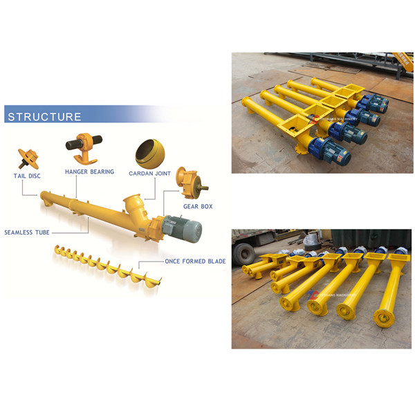 Working principle of Sawdust Hopper Carbon Steel Tubular Screw Conveyor is rotating spiral blade for screw conveyor conveying the material goes on, the material is not spinning force with the blades of screw conveyor is its own weight and screw conveyor casing material for material friction screw conveyor on the axis of rotation of the welding of spiral blade, blade surface type according to the conveying material have different entity type belt type surface type, such as type of screw conveyor screw axis of vane surface terminal at the direction of material movement have thrust bearings to the material to spiral axial reaction force, when the captain a long, should add hanging bearing in the middle.